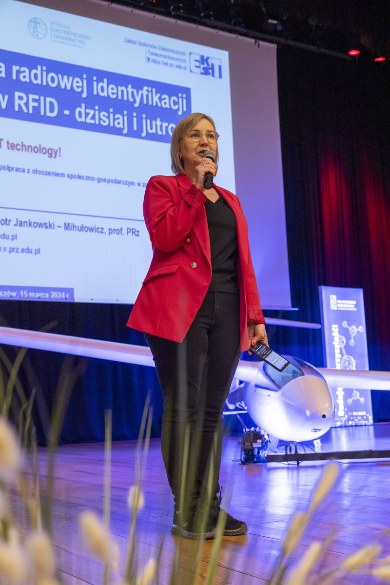 O technice radiowej identyfikacji obiektów RFID i o jej znaczeniu w życiu codziennym opowiedział dr hab. inż. Piotr Jankowski-Mihułowicz, prof. PRz z Wydziału Elektrotechniki i Informatyki podczas wykładu „Technika radiowej identyfikacji obiektów RFID – dzisiaj i jutro”. Zdążyliśmy się już przyzwyczaić do życia z techniką RFID, np. korzystając z płatności zbliżeniowych podczas codziennych zakupów, ski-passów na stokach narciarskich, z kontroli dostępu czy dokumentów z warstwą elektroniczną, takich jak dowody osobiste i paszporty biometryczne. Profesor opowiedział o tekstronicznym identyfikatorze RFID, który stanowi odpowiedź na potrzeby przemysłu odzieżowego, a układ mikroelektroniczny tego identyfikatora będzie można ukryć np. w guziku lub ozdobnym elemencie wszytym do ubrania. Ciekawym przykładem tej nieodległej przyszłości może być unikatowy demonstrator pralki, w której w przyszłości będzie można zrobić pranie w sposób całkowicie automatyczny, bez zastanawiania się nad tym, jak ustawić programator, żeby bezpiecznie dla tkanin uprać rzeczy znajdujące się w bębnie.