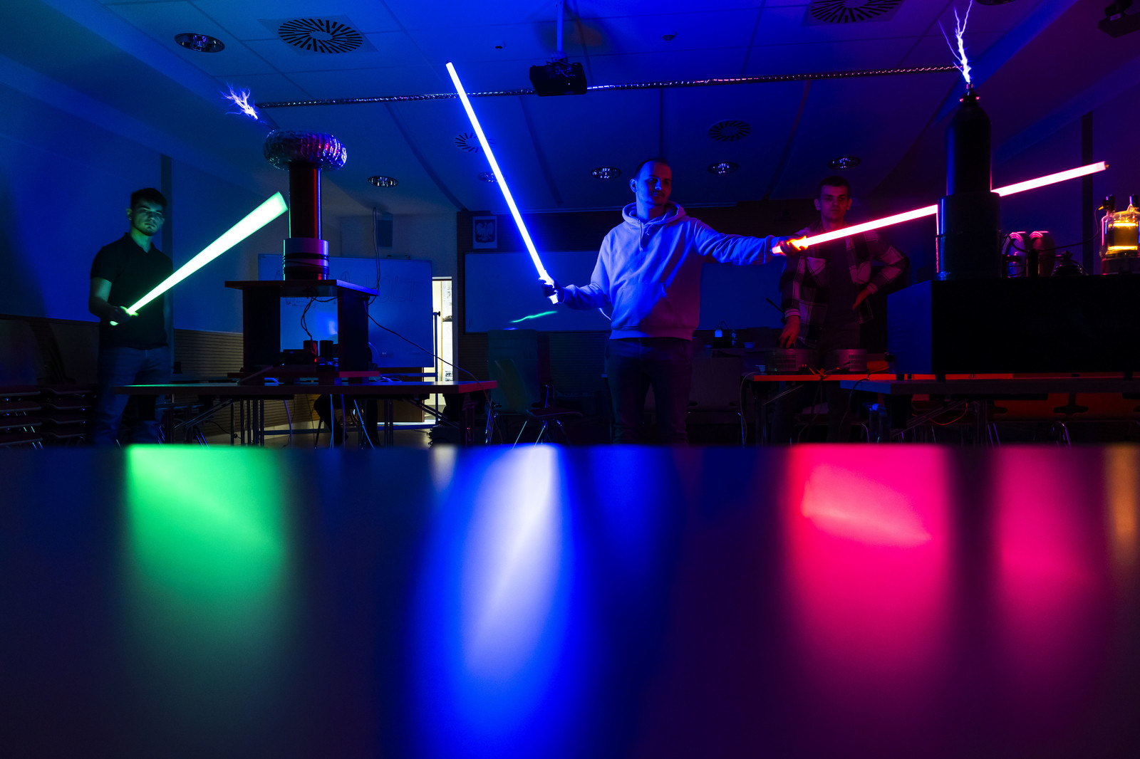 Wydarzenie uświetniły ciekawe pokazy przygotowane przez koła naukowe działające na naszej uczelni. KN „ESPRIT” z Wydziału Chemicznego zapewniło wiele „wybuchowych” niespodzianek, KN „FOTON” z Wydziału Matematyki i Fizyki Stosowanej zademonstrowało wybrane prawa i zjawiska fizyczne, natomiast Koło Naukowe MegaVolt z Wydziału Elektrotechniki i Informatyki zaprezentowało pokaz wysokich napięć.