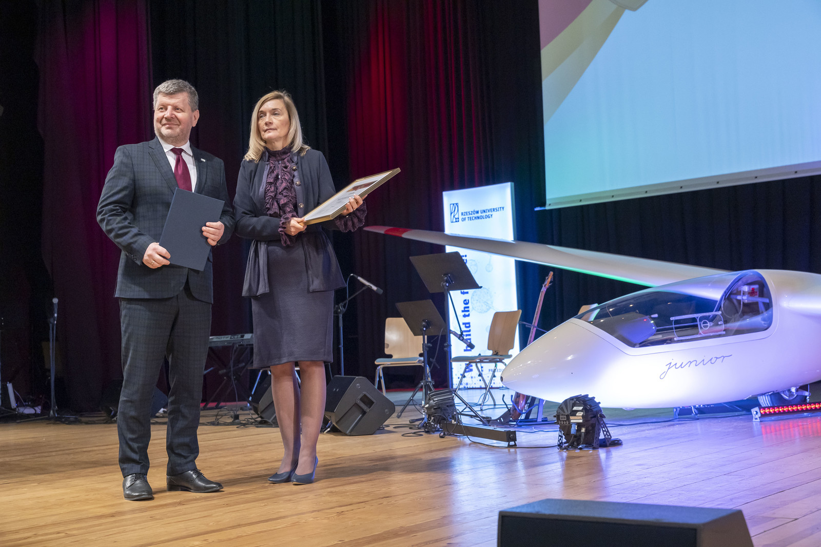 W uroczystości udział wzięli również: prorektor do spraw studenckich prof. dr hab. Grzegorz Ostasz oraz przedstawiciele władz wydziałów naszej uczelni, podkarpacki kurator oświaty Dorota Nowak-Maluchnik, wicedyrektor Departamentu Edukacji, Nauki i Sportu Podkarpackiego Urzędu Marszałkowskiego Katarzyna Kuczmenda, Krystyna Wróblewska z Podkarpackiego Centrum Edukacji Nauczycieli w Rzeszowie, dyrektor Wydziału Promocji i Współpracy Międzynarodowej Urzędu Miasta Rzeszowa Marzena Furtak-Żebracka. Obecni byli także reprezentanci samorządów nadzorujących wyróżnione szkoły średnie oraz nagrodzonych placówek – dyrektorzy, przedstawiciele grona pedagogicznego i wyróżniający się uczniowie. Uroczystość poprowadził dyrektor Centrum Komunikacji i Kultury Akademickiej mgr Damian Gębarowski.